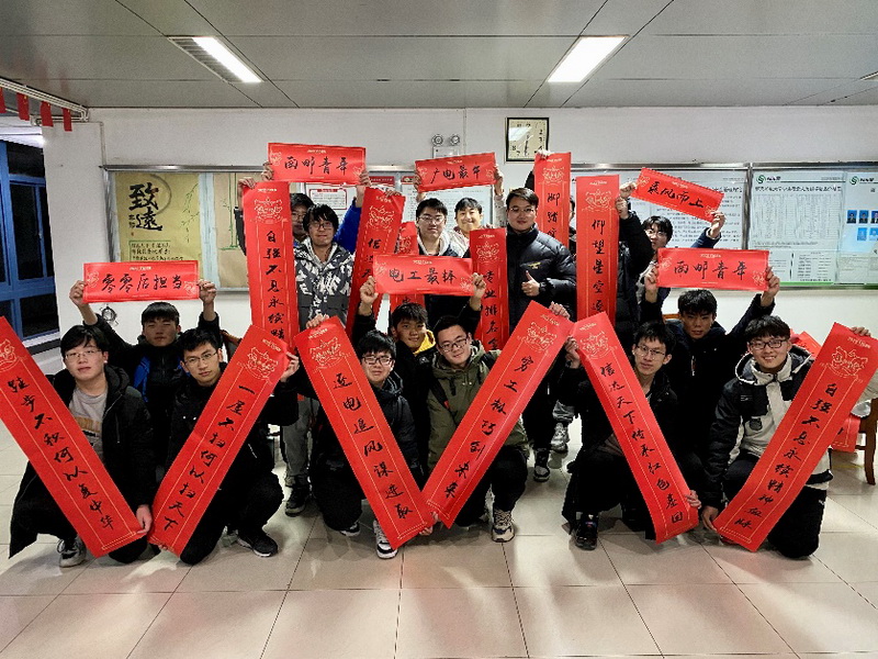 40多副春联共有10多副内容,每一副都有不同的寓意。“祝愿大家在新的一年,不断砥砺奋斗,为祖国的繁荣富强和南邮的发展贡献自己的青春力量!”汪文博老师一边和学生贴着对联“信达天下传承红色基因,自强不息永续精神血脉横批:南邮青年”,一边鼓励着学生。