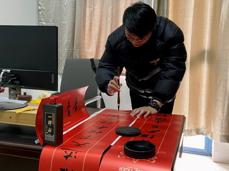 汪文博说,给学生送春联,一是想给同学们一份亲手定制、独一无二的新年礼物;二是想让同学们感受一下中国传统的年味儿,弘扬中国传统文化;三是希望把习近平总书记对青年学生的寄语,和自己对同学们的美好祝愿,以一副副春联的形式传递给同学们,希望他们树立远大理想,热爱伟大祖国,担当时代责任,练就过硬本领,努力成为一个对国家、对人民、对社会有用的人。