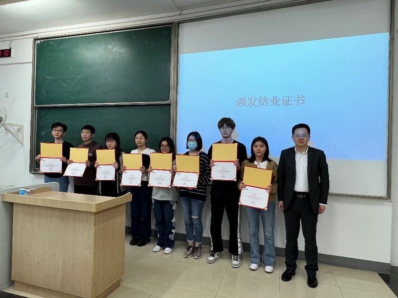 会议伊始,徐雷书记对本次访学项目进行了总结讲话,他说到国际交流访学不仅能提高学生的专业认知、实践能力和国际交流水平,而且能拓展学生的国际视野,为学生将来的发展打下了良好基础。随后,由学生代表张吉同学分享在访学过程中的收获与心得,并表达了对学院以及老师的感谢。最后,由三位院领导给结业成员颁发结业证书,给优秀小组颁发优秀学员证书并且合影留念。