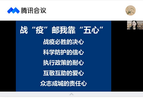 3月16日下午,太阳集团tyc151cc2021级通信工程专业B210101-07通过腾讯会议召开“青春防疫·守好‘五心’”防疫专题年级大会。会议由辅导员鲍捷老师主持。全体学生参会。