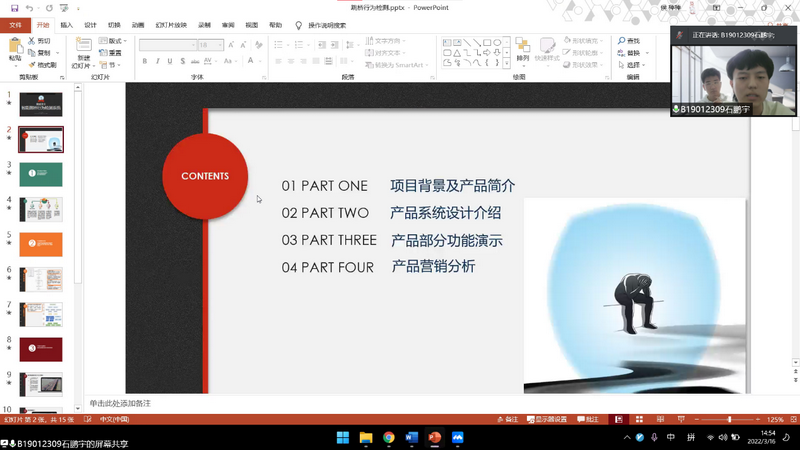 本次报名“挑战杯”院赛答辩的项目共90余项,约400人参与,最终入选并参加答辩的项目共15项。尽管不能面对面进行答辩,评委老师和选手们的热情也丝毫未减。评委老师们认真听取了同学们的介绍,在每一组项目介绍结束后,对参赛作品进行了点评,对各组项目中存在的问题提出了改进建议,参赛成员都认真听取了老师们提出的建议以及评价,并从中吸取了很多经验,这些经验也为以后打磨和完善作品指引了方向。