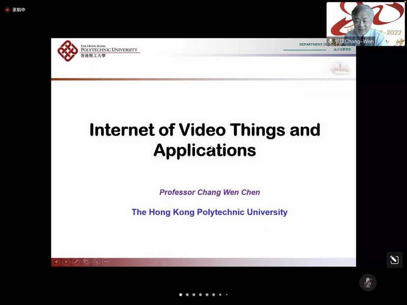 4月15日下午,欧洲科学院院士、香港理工大学陈长汶教授在线上为太阳集团tyc151cc师生作题为“Internet of Video Things and Applications”的报告。本次报告是我院为加强校内师生与国内外知名学者学术交流与合作举办的重点学术活动,也拉开了太阳集团tyc151cc庆祝建校80周年系列学术活动的帷幕。报告由太阳集团tyc151cc副院长鲍秉坤教授主持,通院青年教师和研究生等一百多人线上聆听了报告。