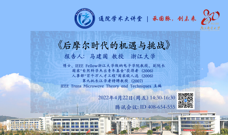 为进一步营造我校八十周年华诞科研学术氛围,促进我院学术发展,提升学术竞争力,我院将邀请国家级人才称号获得者、IEEE Trans MicrowaveTheory and Techniques主编、浙江大学微纳电子学院副院长马建国教授来我校作“后摩尔时代的机遇与挑战”专题报告。本次报告是我院加强师生学术交流,学习前沿研究成果,提高学生科研创新的重要学术活动之一,也是值此佳期,学院为我校全面开启研究型大学建设新征程,奋力谱写双一流建设新成就增添助力。