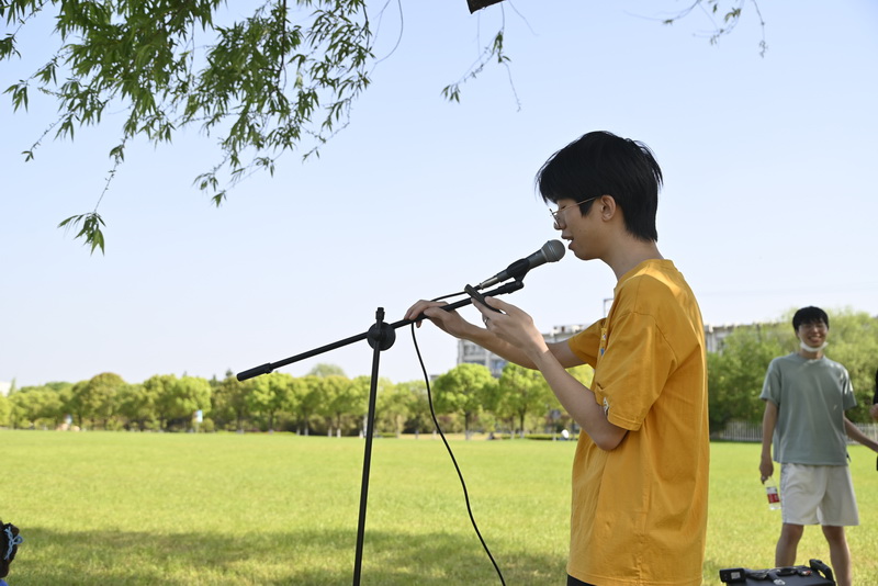 春风融融,沃野复苏,在这个万物生长的季节,4月21日,B200116班的同学们走出宿舍,开展户外团支部活动。草地音乐会作为一项文艺活动,鼓励同学们展现艺术才华,通过音乐放松心情,缓解学习压力。音乐会上,几位同学倾情献唱,《信达天下》《孤勇者》等歌曲旋律环绕在草坪的上空,同学们的热情被点燃,跟着律动挥舞手臂,活动现场的氛围被成功调动起来。