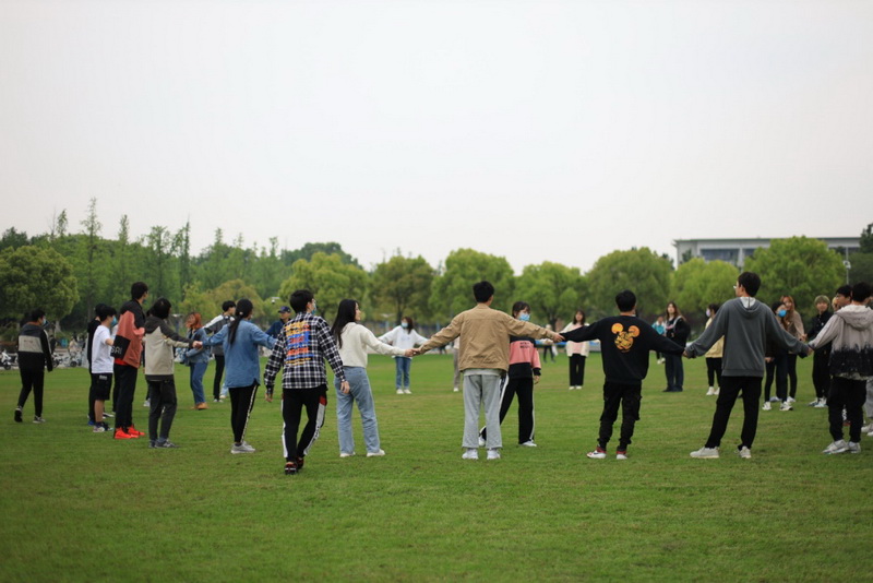 在蒋友林老师的主持下,同学们进行了“心有千千结”的游戏,同学们按学号分组围成两个圆圈,记住自己左右的人,然后随机走动,彻底打乱后再按照之前的左右顺序把手拉在一起,大家交错地连接在一起,正似游戏的名称“千千结”。随后同学们在不松手的前提下,通过翻、跨、钻等方式把“结”解开,恢复为最初的两个圈。在这一过程中,同学们充分发挥自己的聪明才智,积极参与其中,蒋友林老师趁机鼓励大家通过游戏思考人生,尝试走出自己的舒适圈,突破自我。