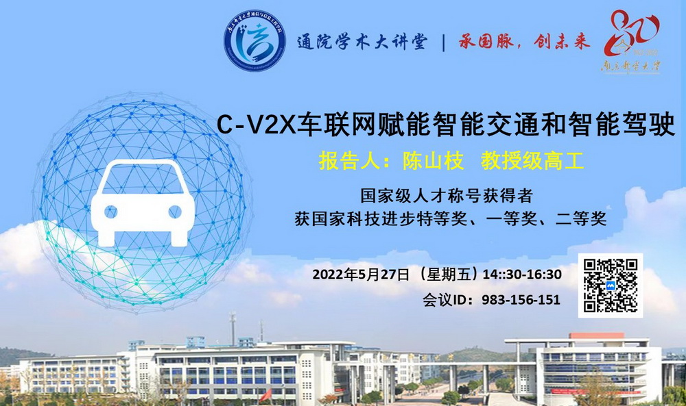 2022年5月27日星期五下午,我院将邀请国家级人才称号获得者,中国信息通信科技集团有限公司(中国信科)副总经理、专家委主任陈山枝博士来我院作“C-V2X车联网赋能智能交通和智能驾驶”专题报告。本次专题报告是太阳集团tyc151cc为庆祝我校成立80周年举办的第7次“通院学术大讲堂”校庆系列专题报告。报告凝聚了学术前沿应用成果,对标国家与社会发展战略需求,研讨学术研究的新方向、新模式、新服务,不仅为八十周年校庆献上了一份学术厚礼,也为提升学院学科发展水平和育人实效,强化服务社会功能提供了有益的支持。