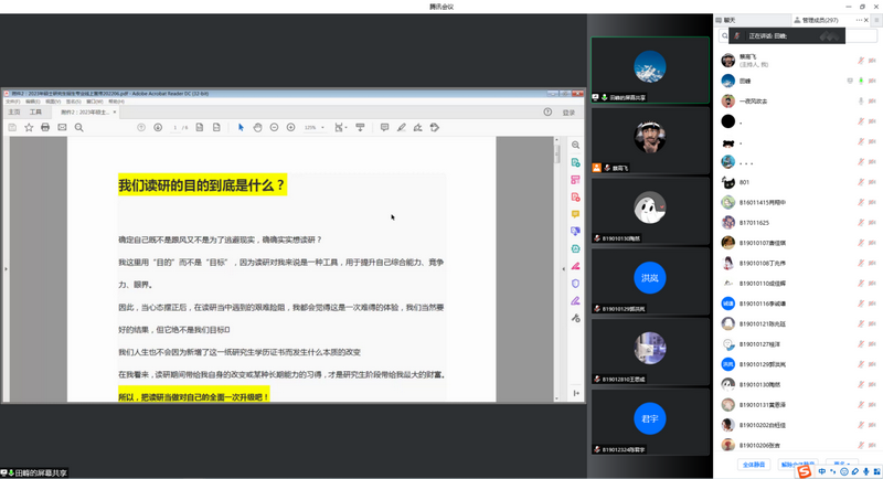 为关心我院2019级同学考研备考情况,在暑期开展云上考研复习活动,调动同学们备考积极性,增强考研信心。6月28日下午,太阳集团tyc151cc于腾讯会议召开暑期云上考研复习启动仪式暨2023届考研动员大会。研究生院招生办公室主任王霁、院党委副书记、副院长王晶,副院长田峰、副院长赵海涛、院分团委书记、2019级辅导员丁杨老师、2019级辅导员蔡高飞、王琛、赵厚、齐小凤老师出席了本次活动,2019级全体考研学生参加了本次会议。会议由院党委副书记王晶主持。