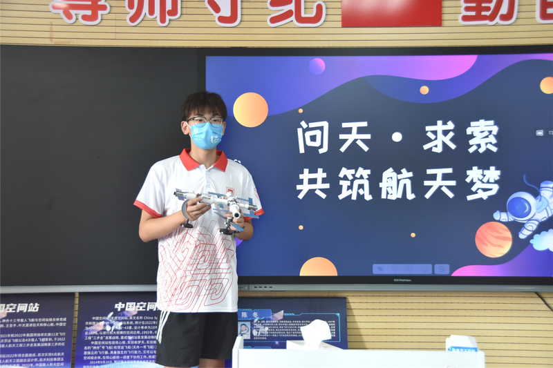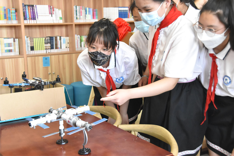 无人机、神舟航天员、嫦娥探月工程、天和核心舱、问天梦天实验舱等航天知识普及课吸引了全体同学的注意,“太空的样子真的很美,虽然我知道成为一名宇航员很难,但我只要坚持努力,一定可以有机会上我国的空间站上去看看,那该有多自豪啊!”当实践团成员问及学生对空间站的感想时,小陈同学激动而满怀憧憬地说到。