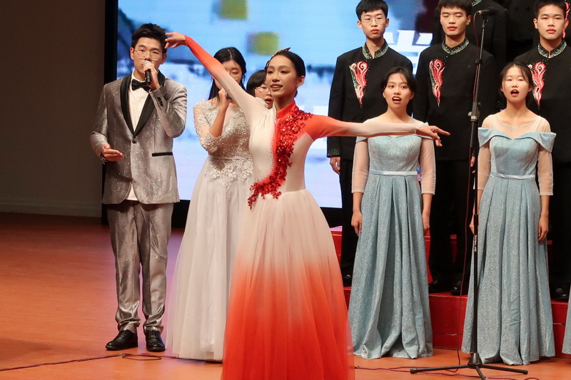 演出当天,我院学生合唱队配合默契、以歌言情,用积极饱满的状态和大气磅礴的歌声唱出新时代青年对党、对祖国的浓厚深情,赞美中华民族自强不息的伟大精神和阔步向前的豪迈气概。现场舞蹈、乐器、视频的完美配合,使整首歌曲高潮迭起、亮点不断,赢得阵阵掌声。