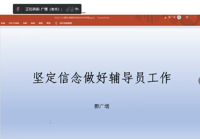 酆广增教授围绕“坚定信念做好辅导员工作”主题,与辅导员老师们线上进行充分交流。