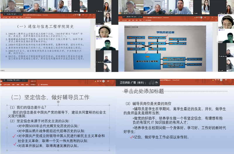 酆广增教授围绕“坚定信念做好辅导员工作”主题,与辅导员老师们线上进行充分交流。