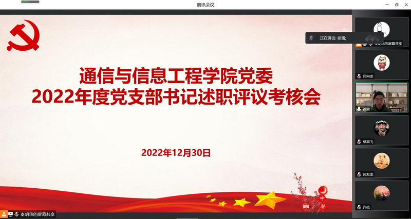 9位教工党支部书记、4位本科生党支部书记和6位研究生联合党支部书记进行了线上述职,从学习贯彻习近平新时代中国特色社会主义思想和党的二十大精神,推动党支部和广大党员深刻领悟“两个确立”的决定性意义,增强“四个意识”、坚定“四个自信”、做到“两个维护”情况;基层党建服务“国之大者”,不折不扣落实上级党委部署要求,在落实立德树人根本任务、推动教育高质量发展、疫情防控等中心任务中发挥党支部和党员作用情况等方面作了汇报。