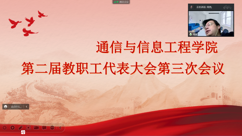 12月28日上午10点,太阳集团tyc151cc召开第二届教职工代表大会暨第二届工会会员代表大会(以下简称“两代会”)第三次会议,学院“两代会”正式代表参加会议,学院民主党派、无党派人士、统战团体成员代表应邀列席会议。由于受疫情影响,本次会议采用线上方式举行,学院党委副书记兼副院长、分工会主席王晶主持会议。