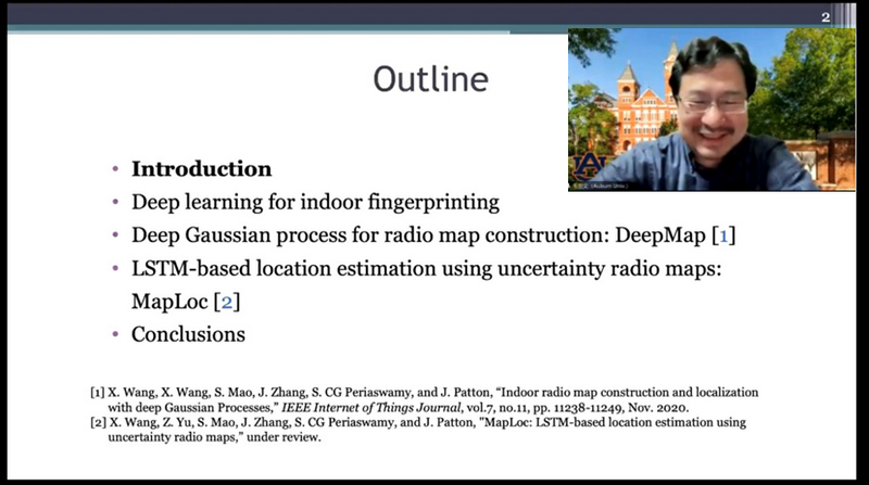 在报告中,Shiwen Mao教授向同学们介绍了室内定位这一任务,并详细介绍了当前应用于室内定位的深度学习模型。Shiwen Mao教授指出,深度学习模型可以快速处理大量的信号,从而提高室内定位的准确率。因此,Shiwen Mao教授提出了一种基于深度高斯过程的室内无线电地图构建和位置估计系统。该系统使用了RSS样本和地球磁场读数,通过深度高斯过程生成更加精确的无线电地图。这项研究减少了实际测量中的工作量,为室内定位研究提供了更为高效和精确的方法。