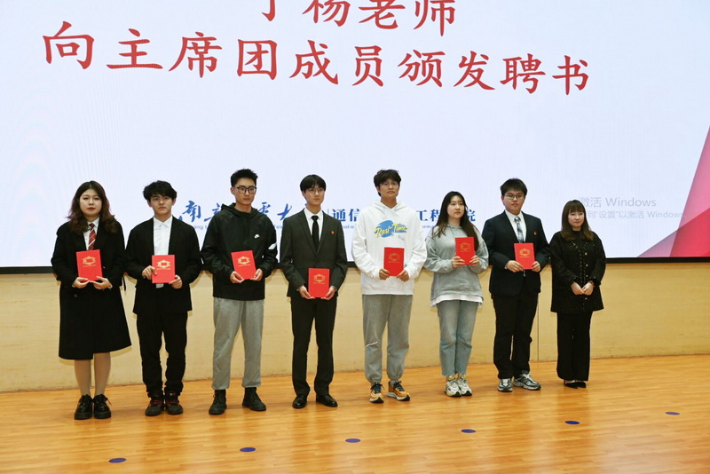在聘书颁发仪式中,丁杨老师为主席团成员颁发聘书,2021级本科辅导员老师为部门负责学生代表颁发聘书,2022级本科辅导员老师为通院学生会代表颁发聘书,2020级本科辅导员老师为通院学生会班级联络员颁发聘书。新的道路,新的征程,聘书是责任的指引,是努力的方向。