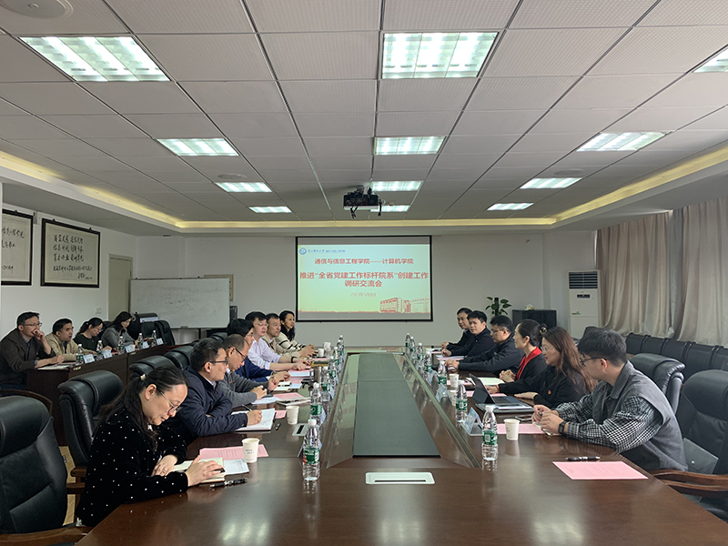通信学院周亮院长致欢迎词并简要介绍学院情况,徐雷书记主持会议并介绍了学院“全省党建工作标杆院系”申报工作经验及学院党建工作情况,信息工程系党支部书记李汀分享了“全国党建工作样板支部”创建工作体会。计算机学院刘蒙书记介绍了该院“全国百名研究生党员标兵”申报经验和学院党建工作情况。