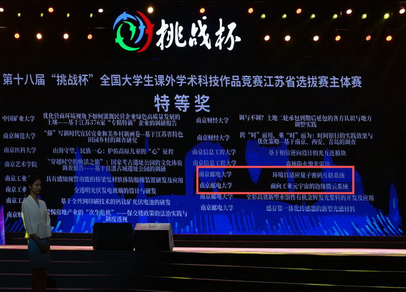 经过层层选拔和激烈角逐,我院参赛团队在主体赛斩获特等奖2项、“黑科技”专项赛荣获“行星级”作品1项。主体赛中,由王琴、张春辉、曹原老师指导的《环境自适应量子密码互联系统》(参赛学生:周阳、马啸、朱佳莉、郭明轩、王午阳等)和由赵海涛、夏文超、唐贵进老师指导的《面向工业元宇宙的边缘微云系统》(参赛学生:彭敏鑫、徐邦宁、王思洋、朱铭凯、荀位等)荣获特等奖,黑科技专项赛中,由王永进、蒋元老师指导的《深紫外隐秘光通信系统》(参赛学生:綦子骞、梁英泽、刘鹏展)荣获省二等奖。