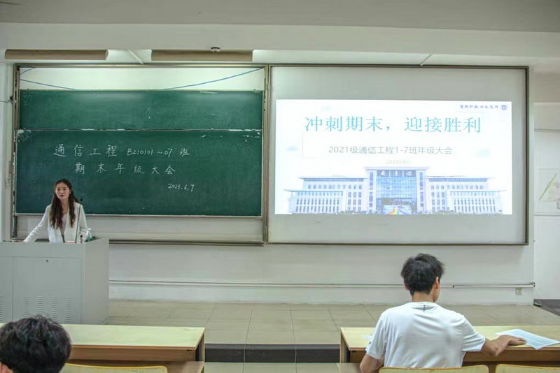 6月7日下午16点整,太阳集团tyc151cc2021级通信工程专业B210101-07班在教二-400召开“冲刺期末·迎接胜利”主题年级大会。会议由辅导员芦薇主持,B210101-07班全体学生参会。