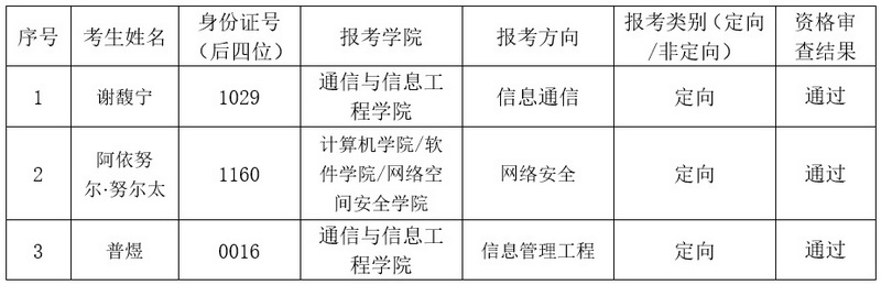 2023年“少数民族高层次骨干人才计划”电子信息专业申请考核制招收博士研究生资格审查通过名单