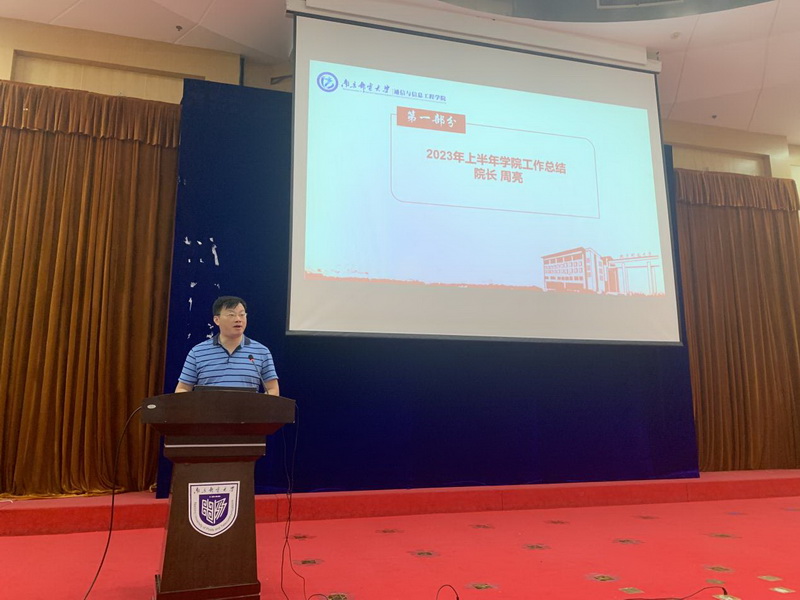 学院院长周亮向全院作2023年上半年工作总结汇报,从党建工作、学科建设与研究生培养、本科教学与实验室建设、科研与社会服务、师资队伍、团学工作、国际化工作等七个方面介绍了学院在2023年上半年取得的成绩。