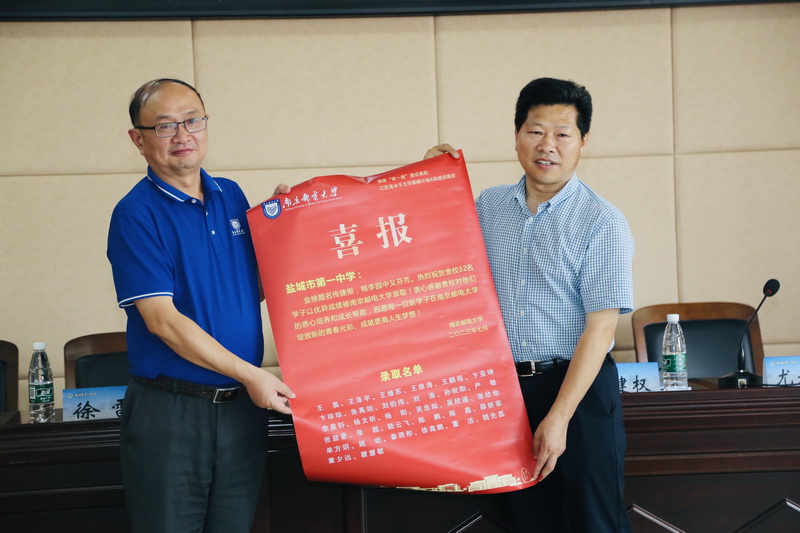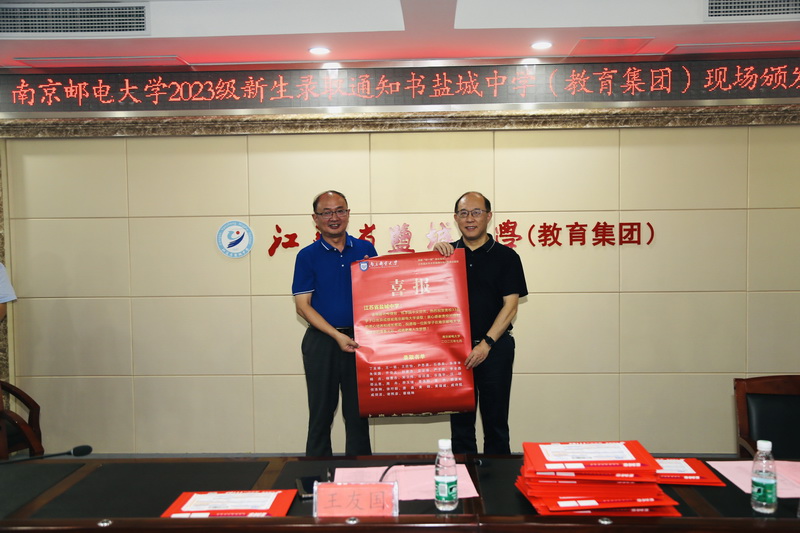 7月25日,校党委常委、副校长王友国带领盐城地区招生组负责人赴我校优质生源基地江苏省盐城中学(教育集团)和盐城市第一中学,为今年考取我校的68名2023级新生颁发录取通知书。