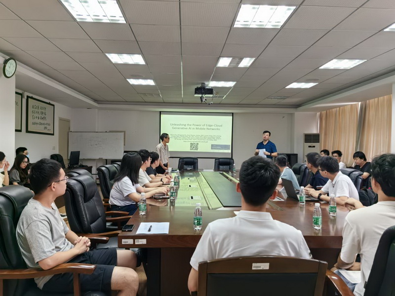 Dusit Niyato教授为我院师生作题为“Unleashing thePower of Mobile Edge-Cloud Generative AI Services and AIGC Networks”的学术报告。Dusit Niyato教授首先介绍了移动AIGC网络中AIGC业务的生命周期,包括数据收集、训练、微调、推理和管理等。然后,他介绍了支持AIGC业务所需的云-边-移动基础设施和相关技术,使用户能够在移动边缘网络访问AIGC。接着,他总结了移动AIGC网络的应用案例。最后,他对移动AIGC网络的一些未来研究方向进行了展望。