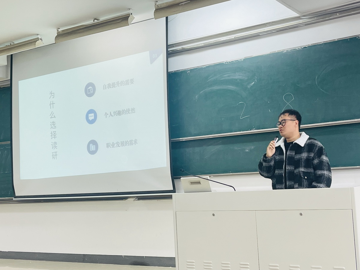 之后,贺承亮学长分享了自己在大学期间如何做好准备,以顺利进入心仪企业的经验。他强调了实习经历、技能提升和求职技巧的重要性。孙畅学长则分享了自己在本科期间担任学生干部工作、社会实践经验,以及毕业后在志愿活动和就业方面的选择。他强调了自我认知和职业规划的重要性,让同学们对如何选择考研或就业有了更清晰的认识。代筱学长以自己在国外工作的经历为例,向大家介绍了工作生活经验。他的故事让同学们对未来的职业生涯有了更具体的想象,也坚定了他们的目标。