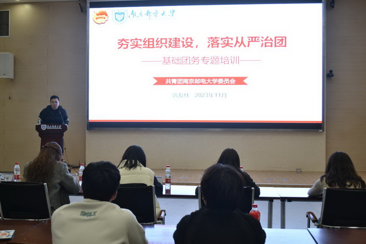 为深入贯彻落实习近平总书记关于青年工作的重要思想,围绕学习宣传贯彻党的二十大精神和团的十九大精神,进一步巩固基层团组织工作基础,培养一批高素质团干部队伍,推动我院全面从严治团工作走深走实,11月22日18:30学院分团委在仙林校区中兴报告厅,组织开展了以《夯实组织建设落实从严治团》为主题的基层团务知识培训会,会议邀请校团委组织宣传部蒋友林老师担任主讲,学院辅导员芦薇、卞雅婷、王文琪、李晨冉、许大鹏、赵厚、蒯鹏飞老师出席会议,大一至大三年级全体团支书参加会议,会议由学院分团委书记丁杨主持。