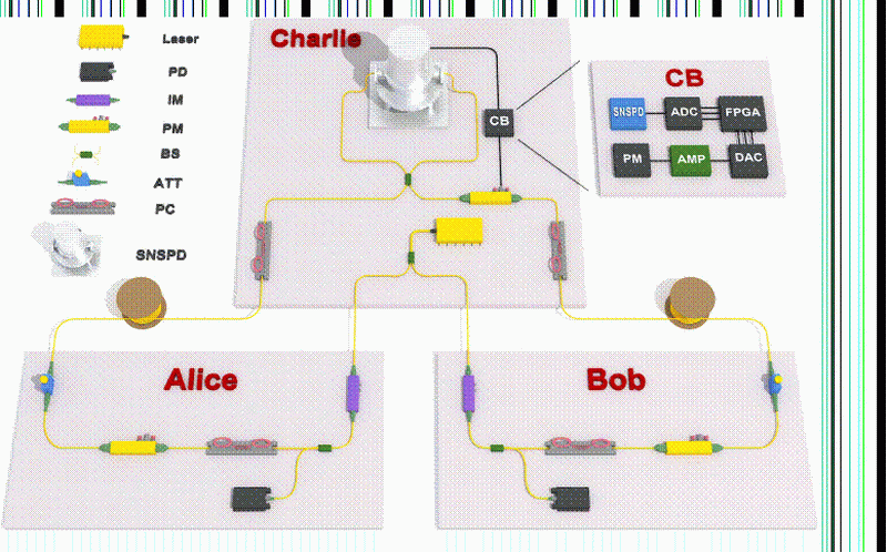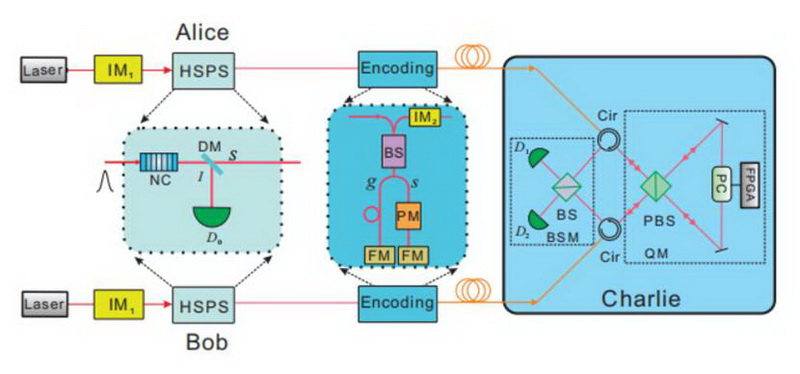 图四、基于量子存储的测量设备无关量子密钥分发方案原理示意图