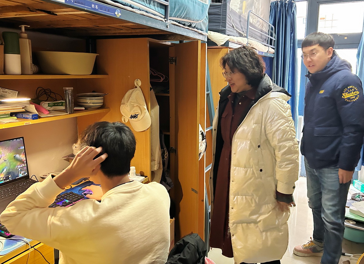 王小露书记带队辅导员深入2023级男生宿舍进行检查