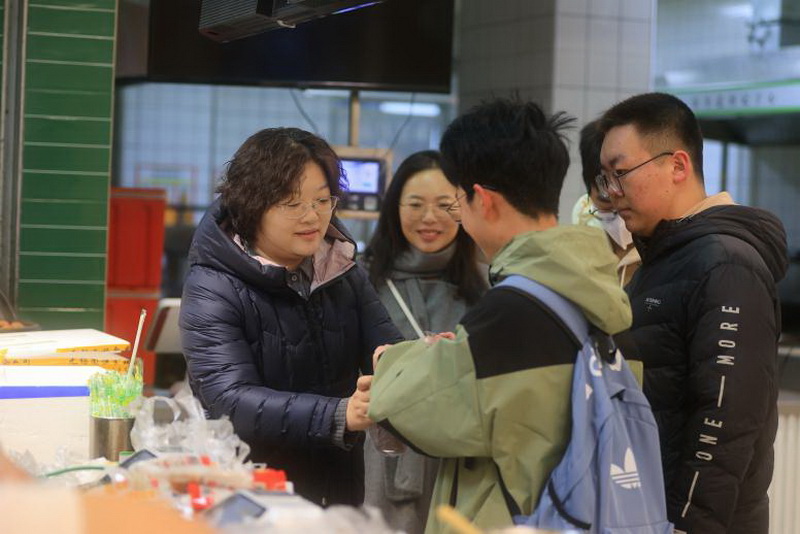 学院党委副书记王小露和辅导员李晨冉为学生发放爱心早餐
