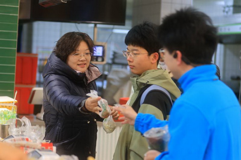 江苏源本科技(集团)股份有限公司总经理唐佩为学生发放爱心早餐