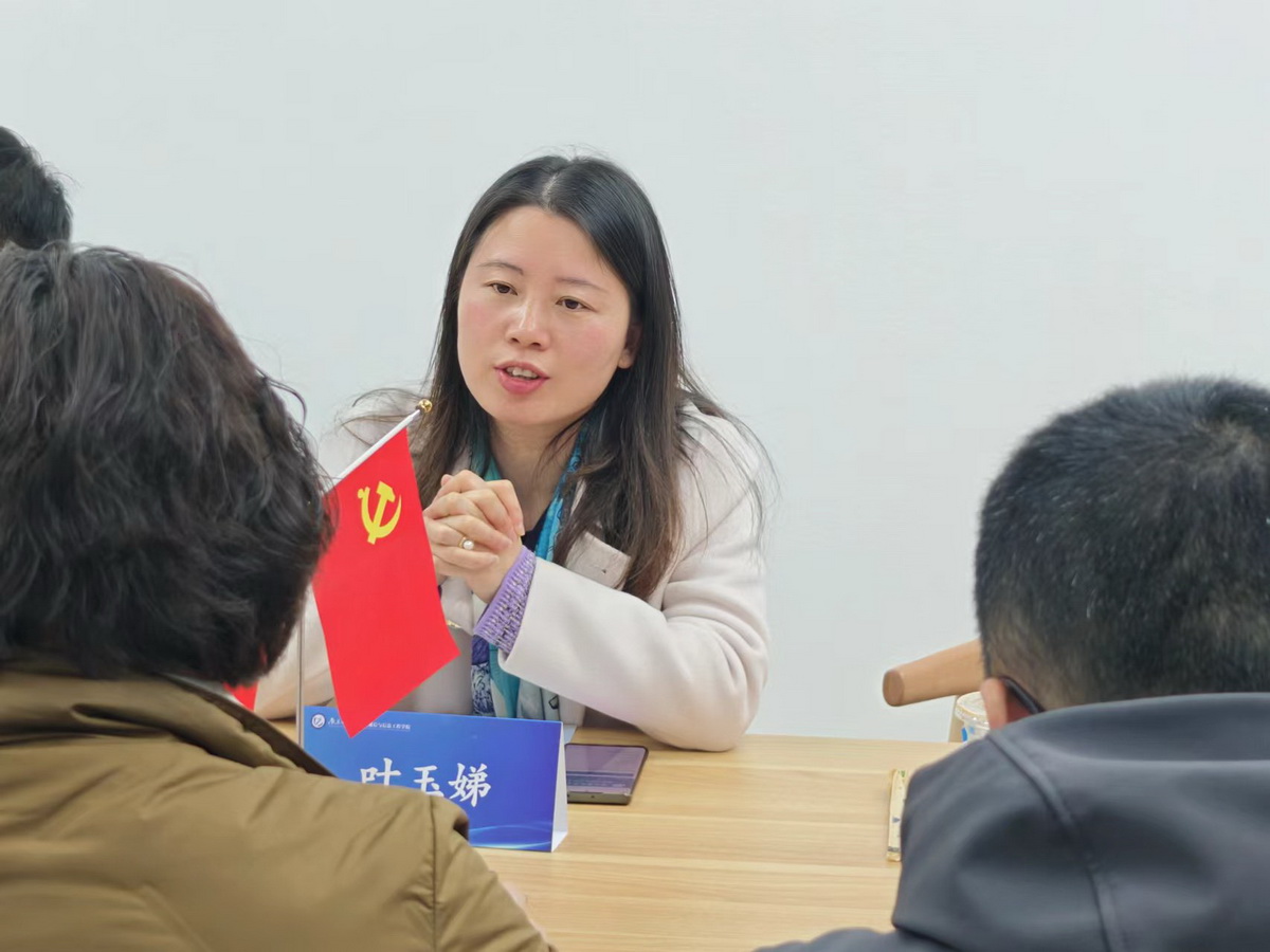 王书记对叶玉娣副书记一行表示热烈欢迎,她围绕“立德树人 红蓝融通 提高质量 追求卓越”这个主题,分“历史沿革、师资队伍、学风建设、党团建设、人才培养”五个方面对我院学生工作开展的基本情况向南信大电子与信息工程学院的学工同仁做了交流介绍。