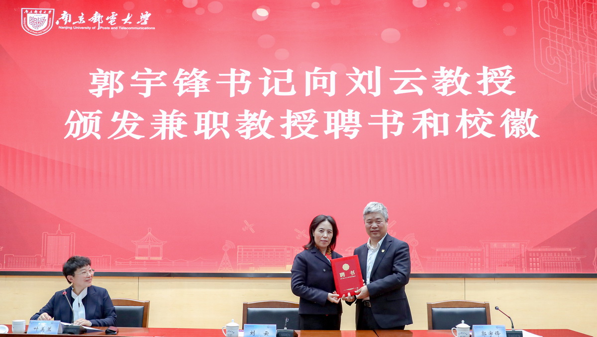 郭宇锋书记为刘云教授颁发聘书和校徽