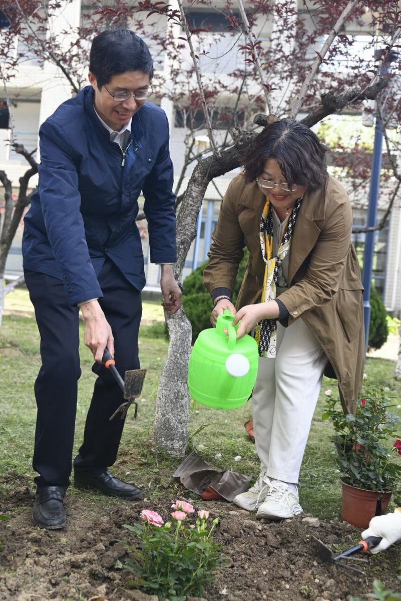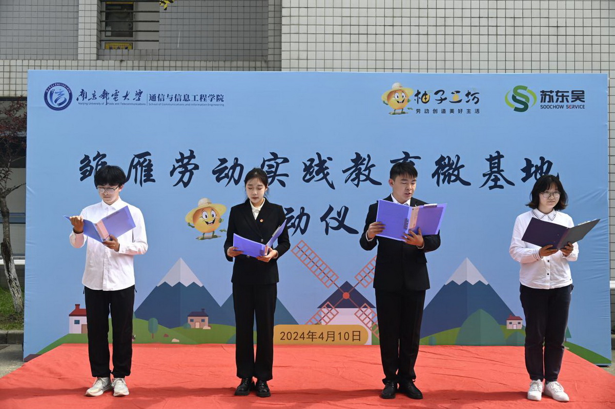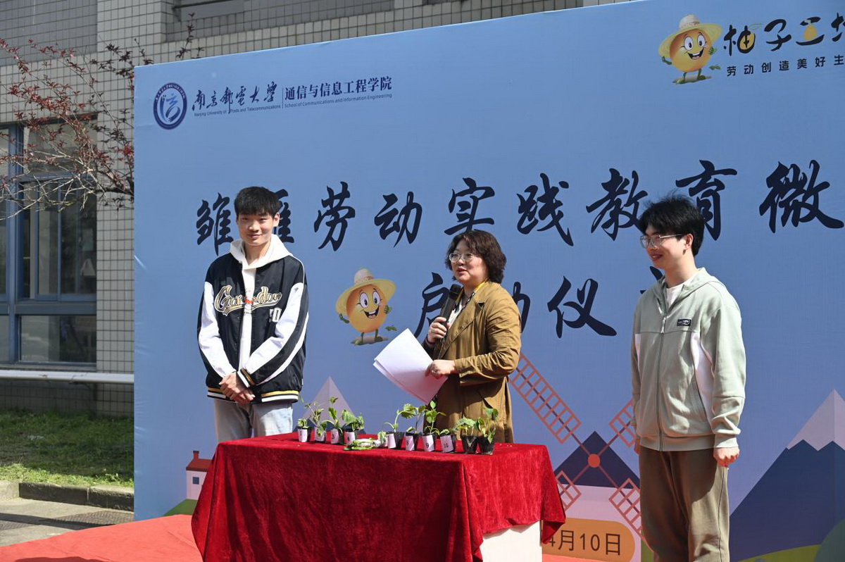 为了全面贯彻落实党的教育方针,加快构建“五育并举”人才培养体系,提升学生劳动素质和创新精神,促进学生全面发展健康成长,在全院形成尊重劳动、热爱劳动、崇尚劳动的浓厚氛围,4月10日,太阳集团tyc151cc在我校仙林校区桃苑举行雏雁劳动实践教育微基地启动仪式。校党委常委、副校长姜小舜出席活动。校学工处副处长段惠方,宿管中心主任叶刚,校关工委副主任马名骞,关工委老同志张俊祥、崔景伍、王文娟、王缨、戴海鸿、肖秋、徐小琳,我院党委书记徐雷,副院长郭永安,分团委书记丁杨,辅导员赵厚和学生代表参加活动,我院党委副书记兼副院长王小露主持仪式。