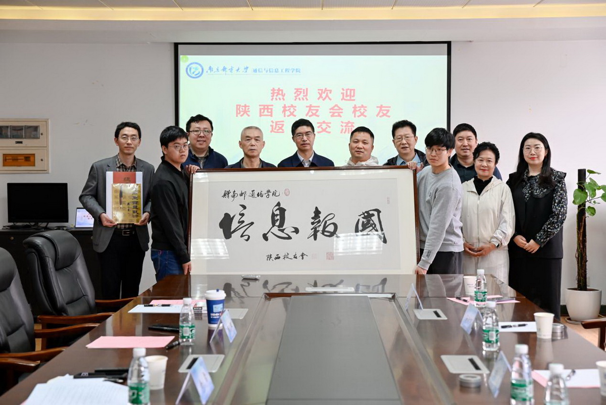 交流会气氛热烈,各位校友回顾在学校学习和生活的美好时光,为学院的发展集思广益、出谋划策。于勤业等陕西校友向学院捐赠书法作品《信息报国》。交流会结束后,与会人员在科研楼大厅合影留念。