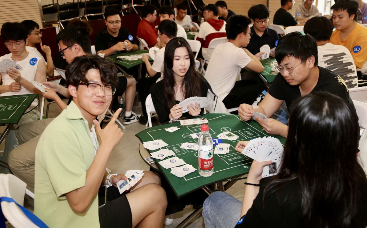 比赛在工作人员的科学分组、精心安排下有序进行。比赛中,选手们沉着应战、欢乐竞技,比智慧、比谋略、拼技巧、拼耐心。搭档之间通力合作、默契配合,充分彰显了个人魅力和团队协作精神。出牌时谨慎中夹带着试探,洗牌时欢笑中进行着复盘,大家的情绪随着出牌的大小和对手的出招起伏跌宕,既有一帆风顺的畅快欢颜,也有开局不利的逆行翻盘,小比赛也蕴藏着大智慧、大谋略。