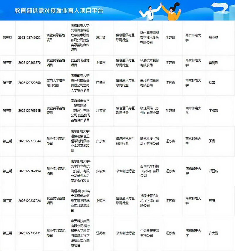 6月14日,教育部高校学生司(高校毕业生就业服务司)发布《关于公布教育部第三期供需对接就业育人项目立项名单的通知》,在学院的统一部署和精心指导下,我院飞鸿辅导员工作室积极对接优质企业,最终成功入选8个供需对接就业育人项目,实现获批数量新突破。