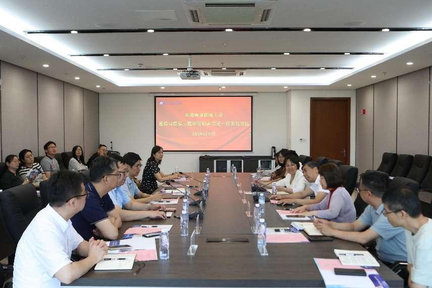 王国平院长对徐雷书记一行表示热烈欢迎。王国平院长介绍了通达学院的历史沿革、办学现状和发展理念,表达了与我院在专业建设、教学科研等方面深化合作的期望。赵允玉书记表示,希望未来与我院在党支部共建工作方面开展深度交流合作。杨立军常务副院长表示,希望可以针对通达学院学生的特点,在应用型人才培养方面,与我院共同推进教学改革工作。