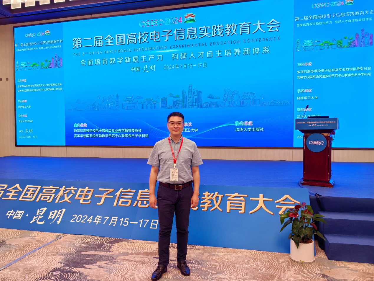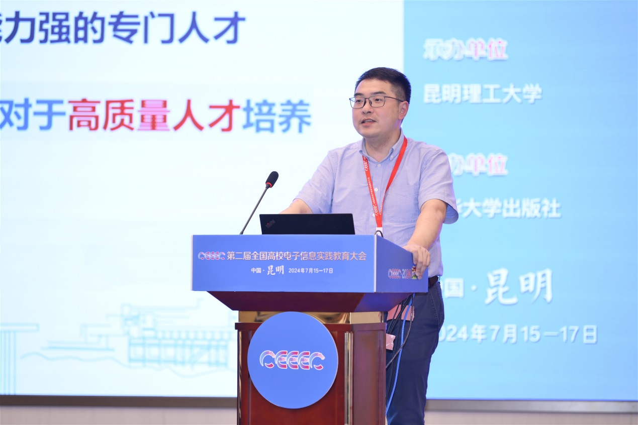 2024年7月15至17日,由教育部高等学校电子信息类专业教学指导委员会与高等学校国家级实验教学示范中心联席会电子学科组主办,昆明理工大学承办,清华大学出版社协办的“第二届全国高校电子信息实践教育大会”在昆明市成功召开。我院信息与通信工程国家级实验教学示范中心、通信与信息网络国家级虚拟仿真实验教学中心宛汀副主任参加了此次大会,并作大会报告——聚焦创新能力培养,赋能新质生产力发展。