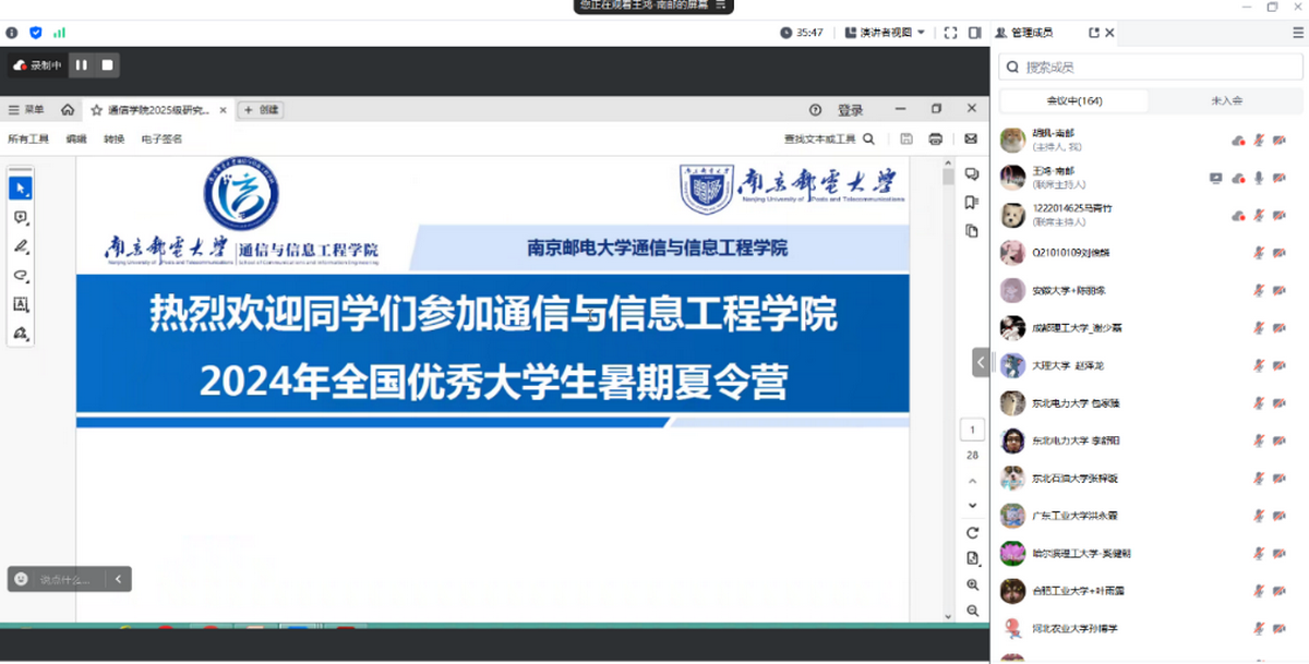在省部级及以上科研平台推介环节,通信与网络技术国家地方联合工程研究中心徐友云教授、宽带无线通信与传感网技术教育部重点实验室陈鸣锴副教授、宽带无线通信技术教育部工程研究中心刘佶鑫副教授、泛在网络健康服务系统教育部工程研究中心夏文超副教授、无线通信与物联网省高校重点实验室张晖教授、智能信息处理与通信技术省高校重点实验室谢世朋教授、Peter Grünberg 研究中心严嘉彬副教授分别对各自科研平台的总体概括、科研情况、人才培养成效进行了详细介绍。
