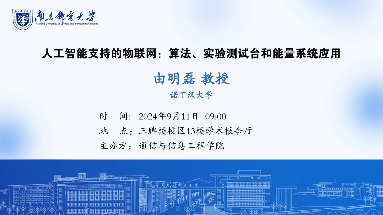 报告题目:人工智能支持的物联网:算法、实验测试台和能量系统应用
