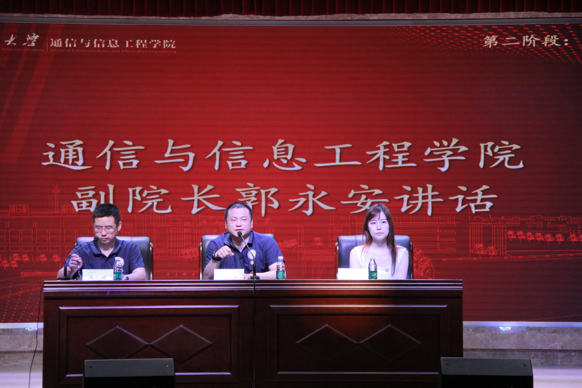在第二阶段的入学教育环节,副院长郭永安以感恩、梦想、责任、努力、相信、坚持等为关键词,为同学们介绍研究生学习阶段中课程学习、实验研究、论文写作、导生关系、学业规划、职业发展等方面的注意事项,期望同学们能够珍惜时光,瞄准科技前沿和关键领域,紧跟时代的步伐,争做国家所需的栋梁之才。