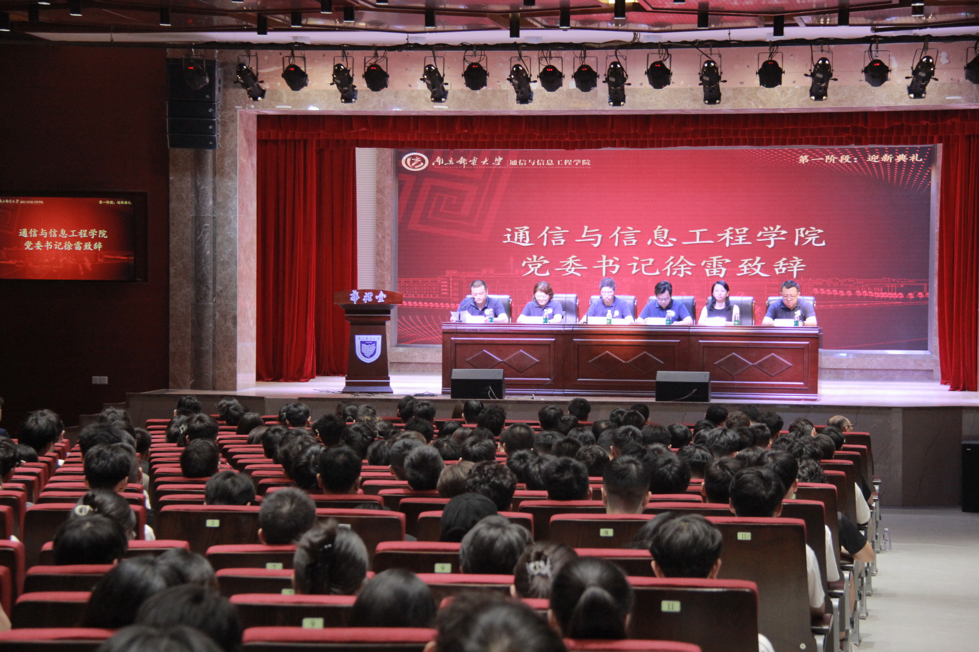 学院党委书记徐雷做开场致辞,对640名新同学选择并来到南邮通院继续深造表示祝贺和欢迎,并对学校和学院的历史进行了简要的介绍。他希望同学们志存高远、勇担使命,时刻铭记自己作为“强国一代”的使命与责任,将个人的理想融入到国家发展的洪流之中;勤学善思、勇于创新,敢于挑战未知,不断突破自我,努力在科研领域取得新的突破和成就;修身立德、锤炼品格,以明德引领风尚,以诚信立身行事,始终保持一颗谦虚谨慎、勤奋进取的心。