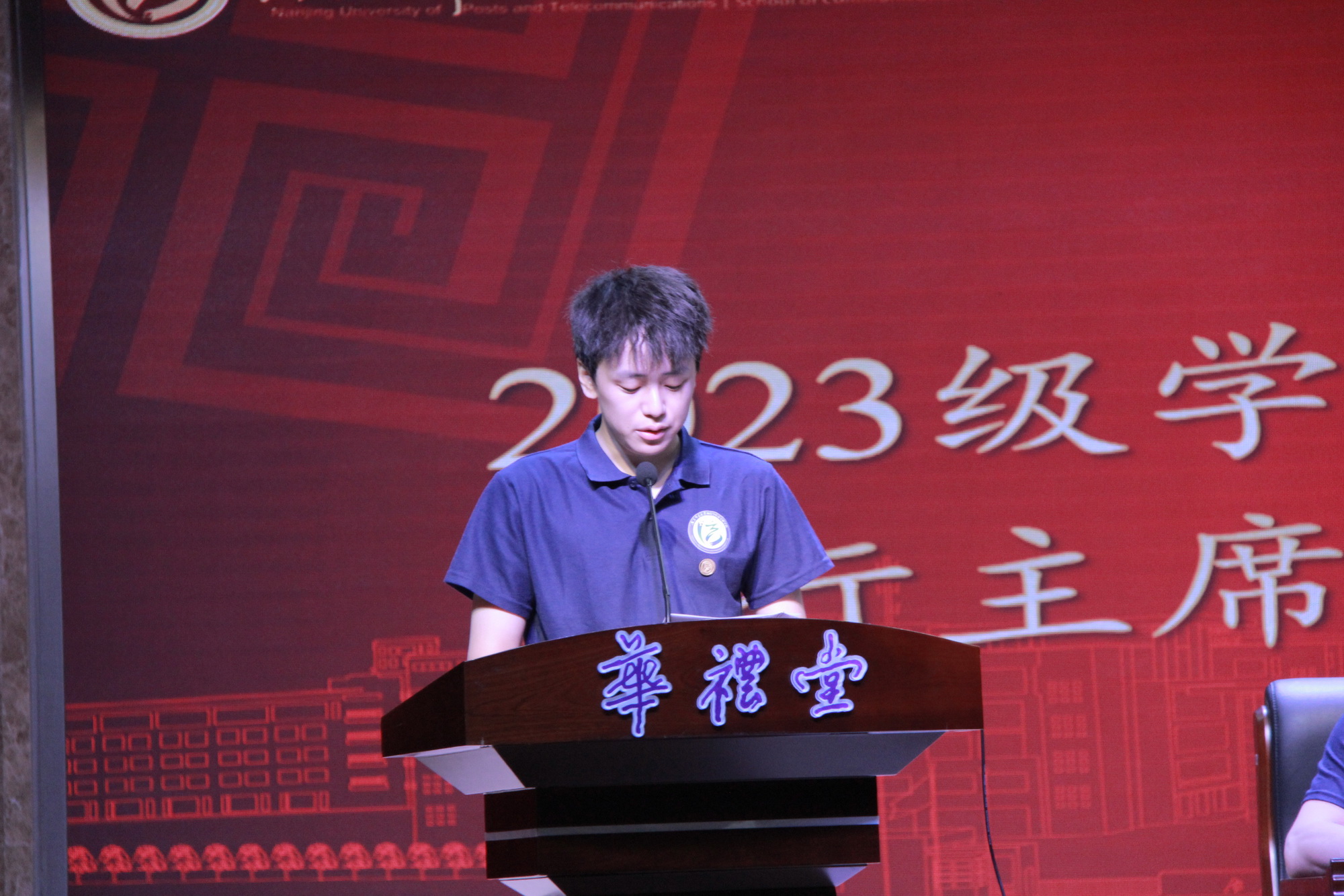 新生代表、2024级的王宇同学回顾了自己在南邮的求学和支教经历,并表示要把南邮青年的理想与情怀不断传递下去。
