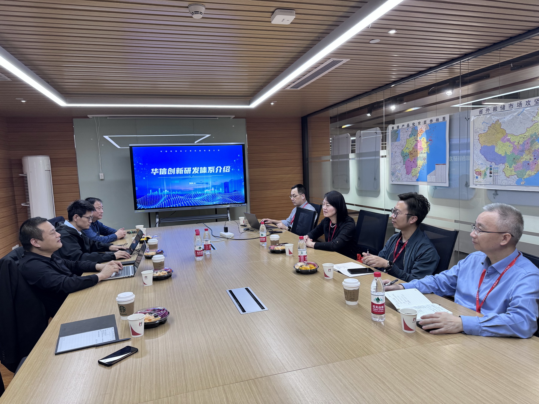 创新院院长柳瑞芸主持座谈会并致欢迎辞,对我院领导的到访表示欢迎。她从创新院业务情况、研发产品的相关内容介绍了创新院的情况,希望双方后续在政府项目联合申报,专利、科研成果转化,多模态信息处理与复杂工业-视频图像分析等方向以及人才培养等领域内开展合作。