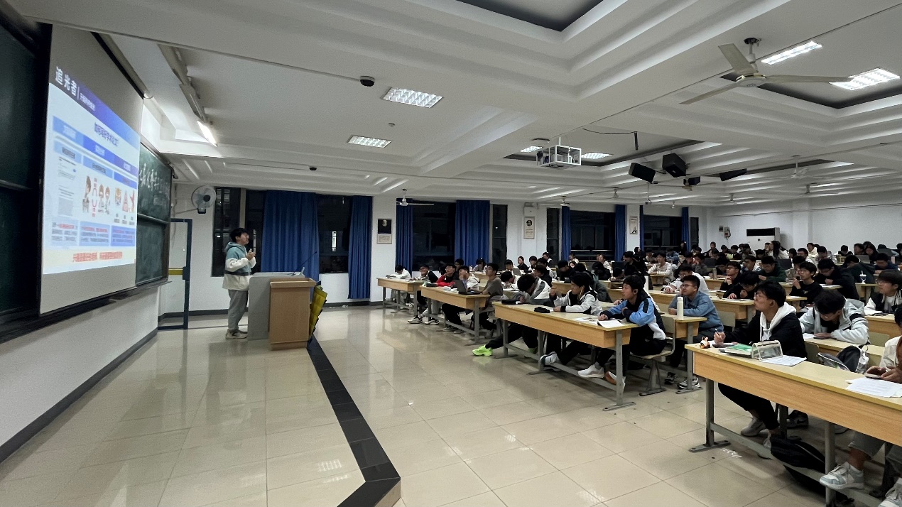 宣讲会上,我院博士生党支部书记余鹏航讲述了大学绩点和科研的重要性,生动形象地举例解释了学术论文的三种创新模式,同时结合自身经历鼓励同学们积极参加社团活动和志愿服务等,做一个朝气蓬勃、爱国爱党、无私奉献的追光者、点灯人。