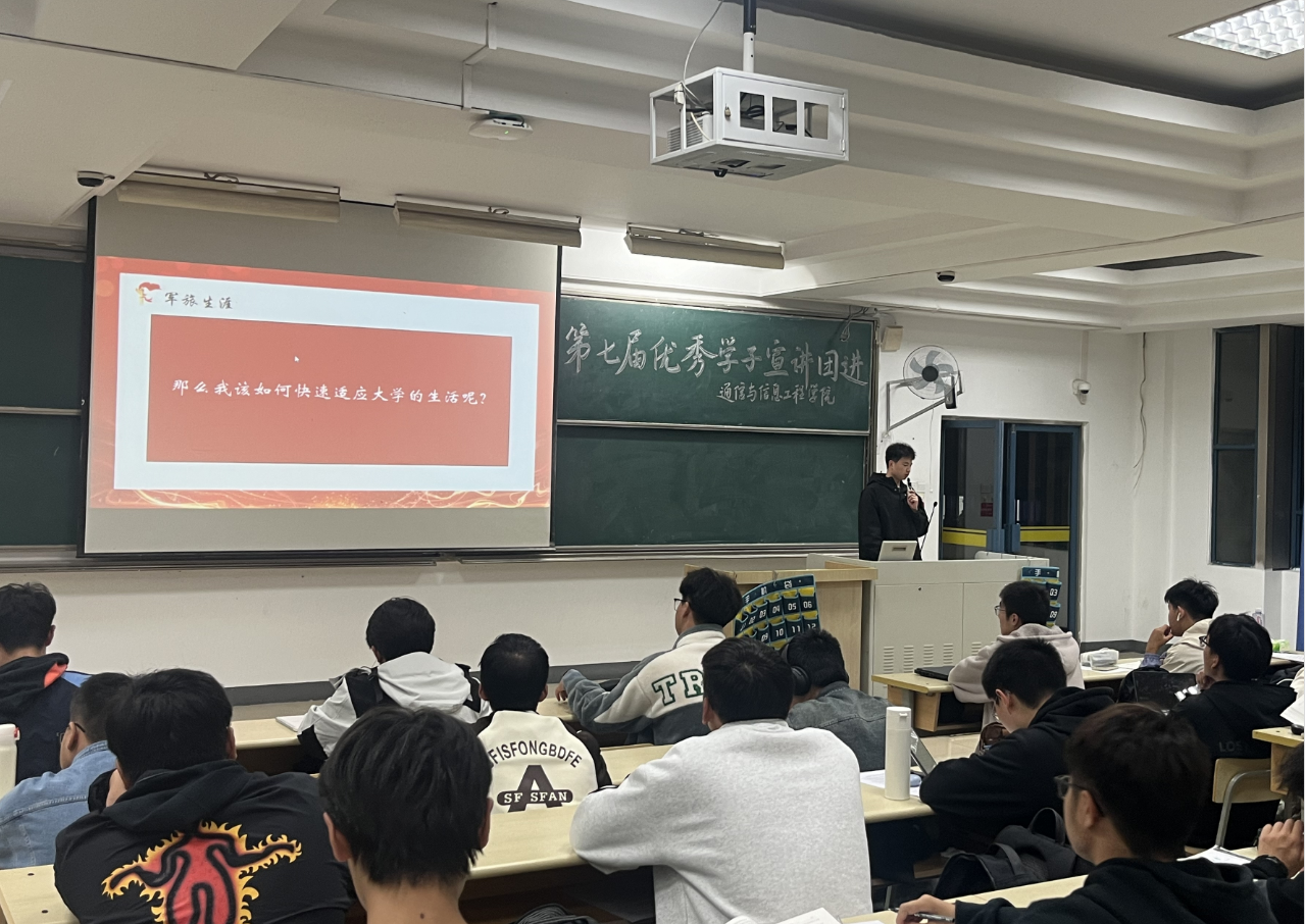 随后,2022级电子信息工程专业、退役大学生士兵魏雪强同学向同学们分享了他的军旅生活,从初入大学的迷茫,到决定入伍,从经历各种“不可能”,到收获满满。回归学业后,魏同学快速调整,并在如何适应大学生活、学好大学课程和做好竞赛准备等方面总结出了自己的方法论。