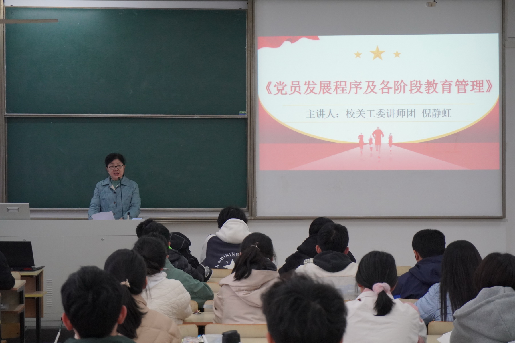 倪静虹老师以《党员发展程序及各阶段教育管理》为题,从发展党员的原则,党员发展的程序,共产党员的条件三个方面深入浅出地解读党员发展程序中的重要环节和关键时间节点,她勉励学员们要不断增强实干本领、提高党性修养,在党的光辉旗帜下,坚定不移听党话、跟党走,为共产主义事业奋斗终身。