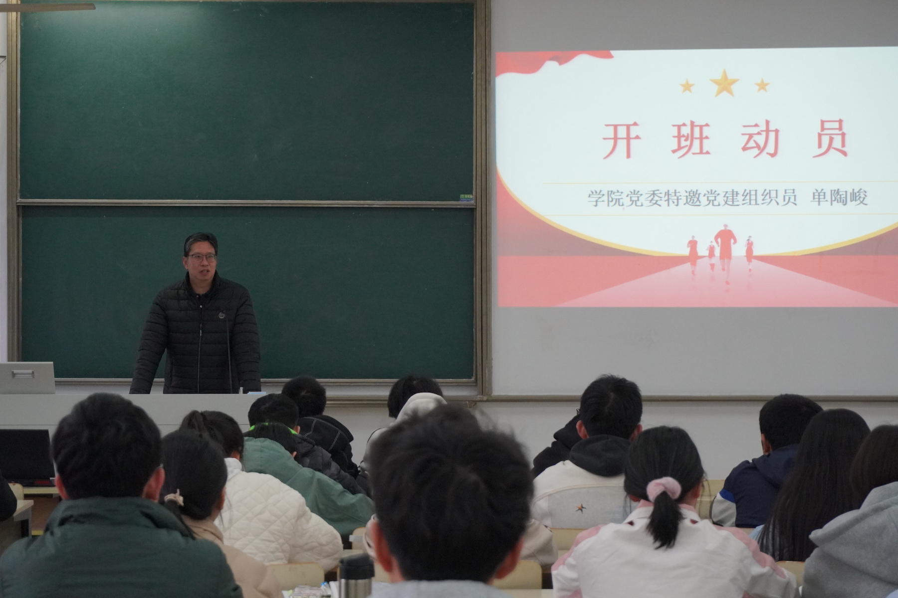 单陶峻老师做开班动员讲话,他以党的二十大精神为指导,强调了党对新时代青年的殷切期盼。他希望青年们要认真思考自己的入党动机,提高政治站位,深入学习党的理论,坚定理想信念,将理论知识与实践相结合,积极争先创优。作为社会主义的建设者和接班人,青年们要怀抱梦想、脚踏实地,敢想敢为、善作善成。